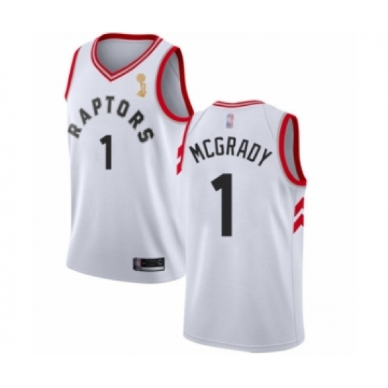 Youth Toronto Raptors #1 Tracy Mcgrady Swingman White 2019 Basketball Finals Champions Jersey - Association Edition