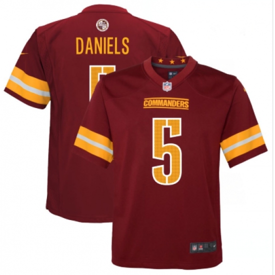 >Youth Washington Commanders #5 Jayden Daniels Burgundy Vapor Limited Football Stitched Jersey