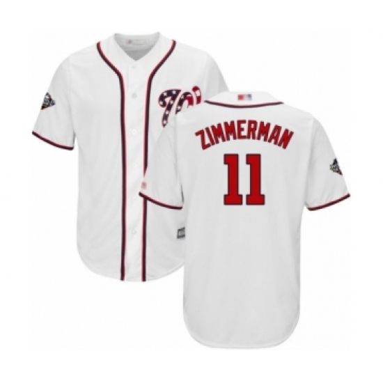 >Youth Washington Nationals #11 Ryan Zimmerman Authentic White Home Cool Base 2019 World Series Bound Baseball Jersey