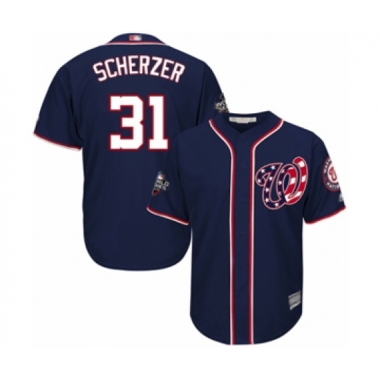 Youth Washington Nationals #31 Max Scherzer Authentic Navy Blue Alternate 2 Cool Base 2019 World Series Champions Baseball Jersey