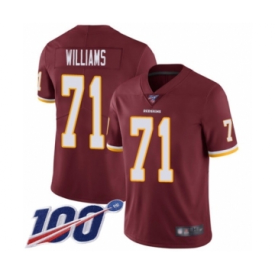 Youth Washington Redskins #71 Trent Williams Burgundy Red Team Color Vapor Untouchable Limited Player 100th Season Football Jersey